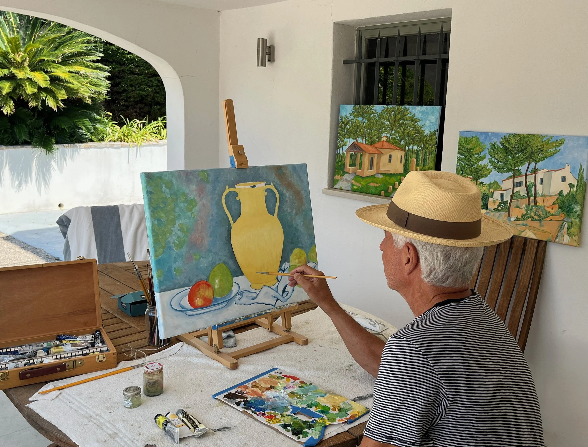 Drawing from Impressionism, Post-Impressionism, and Modernism, Hugh began painting later in his career. He now divides his time between New York City and Mougins, France—a village long celebrated for its artistic community.